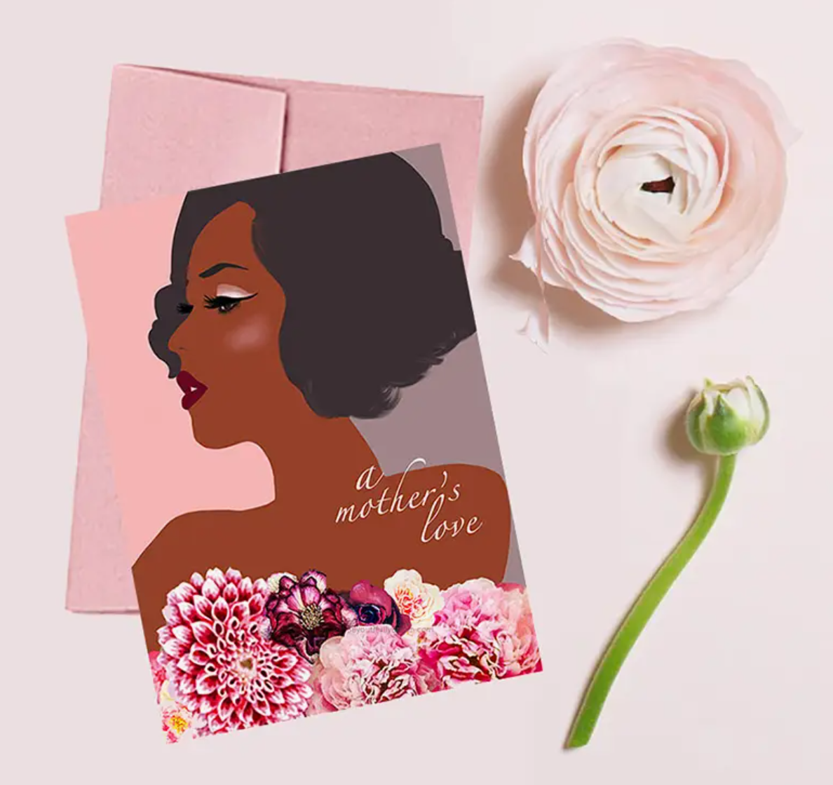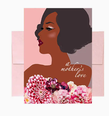 Express your deepest appreciation for the mother figure in your life. Featuring an elegant portrait of a woman framed by delicate pink, purple, and cream florals that gracefully flow like a couture neckline, this card embodies timeless beauty and grace. The soft pink backdrop creates a serene, intimate atmosphere perfect for honoring the maternal figures who bring comfort and strength to your life.