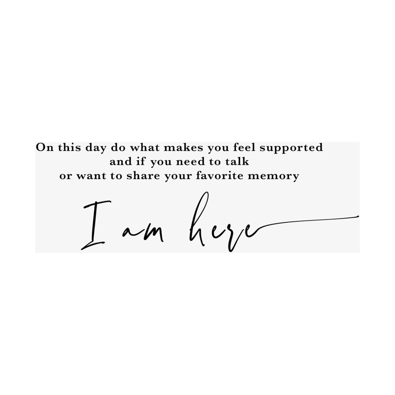 Inside text: "On this day, do what makes you feel supported, and if you need to talk or want to share your favorite memory, I am here"
