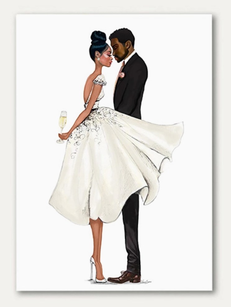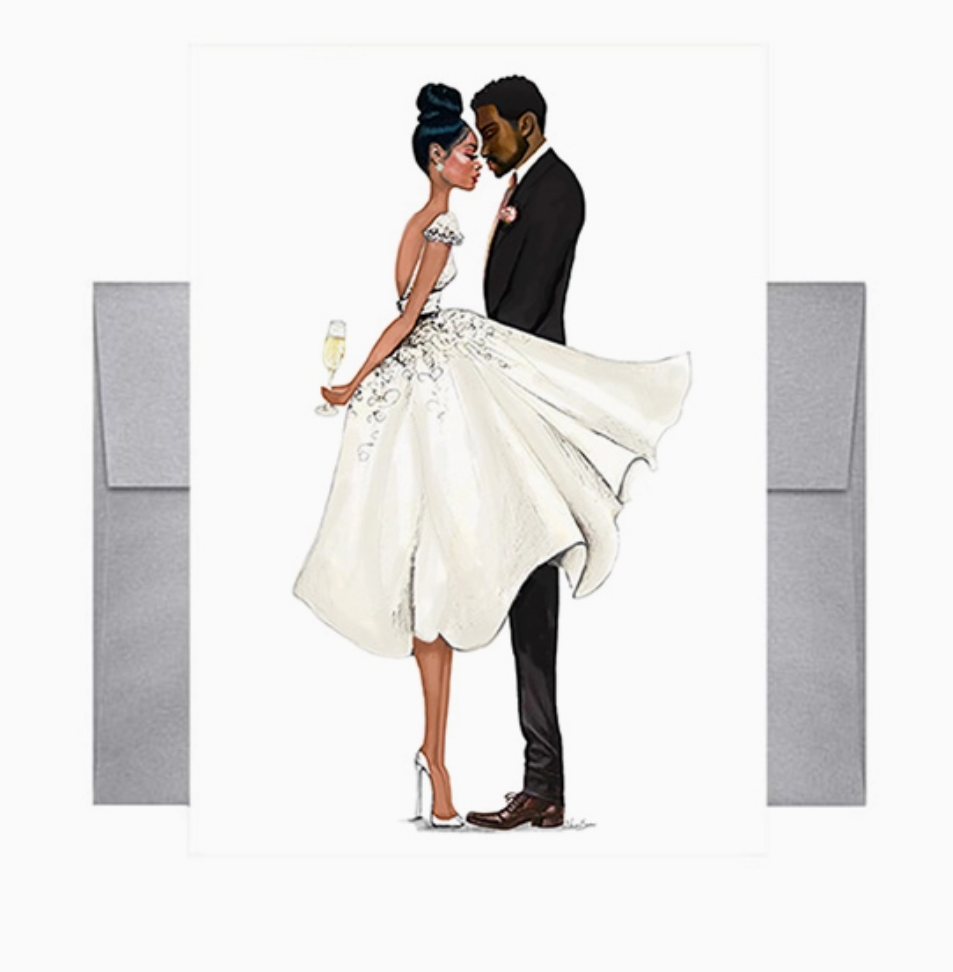 This exquisite card captures an understated yet profoundly intimate scene of newlyweds in a private celebration, embodying the essence of refined romance. The "Quiet Moments" Greeting Card by Beyoutifully Brown conveys your most gracious sentiments for a marriage steeped in timeless beauty and meaningful connection.