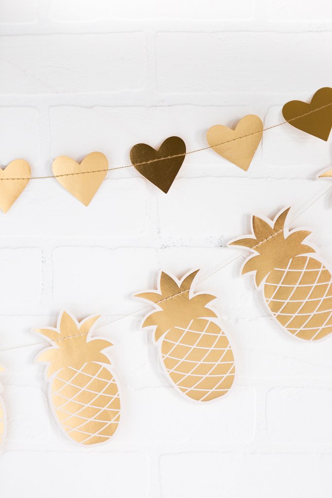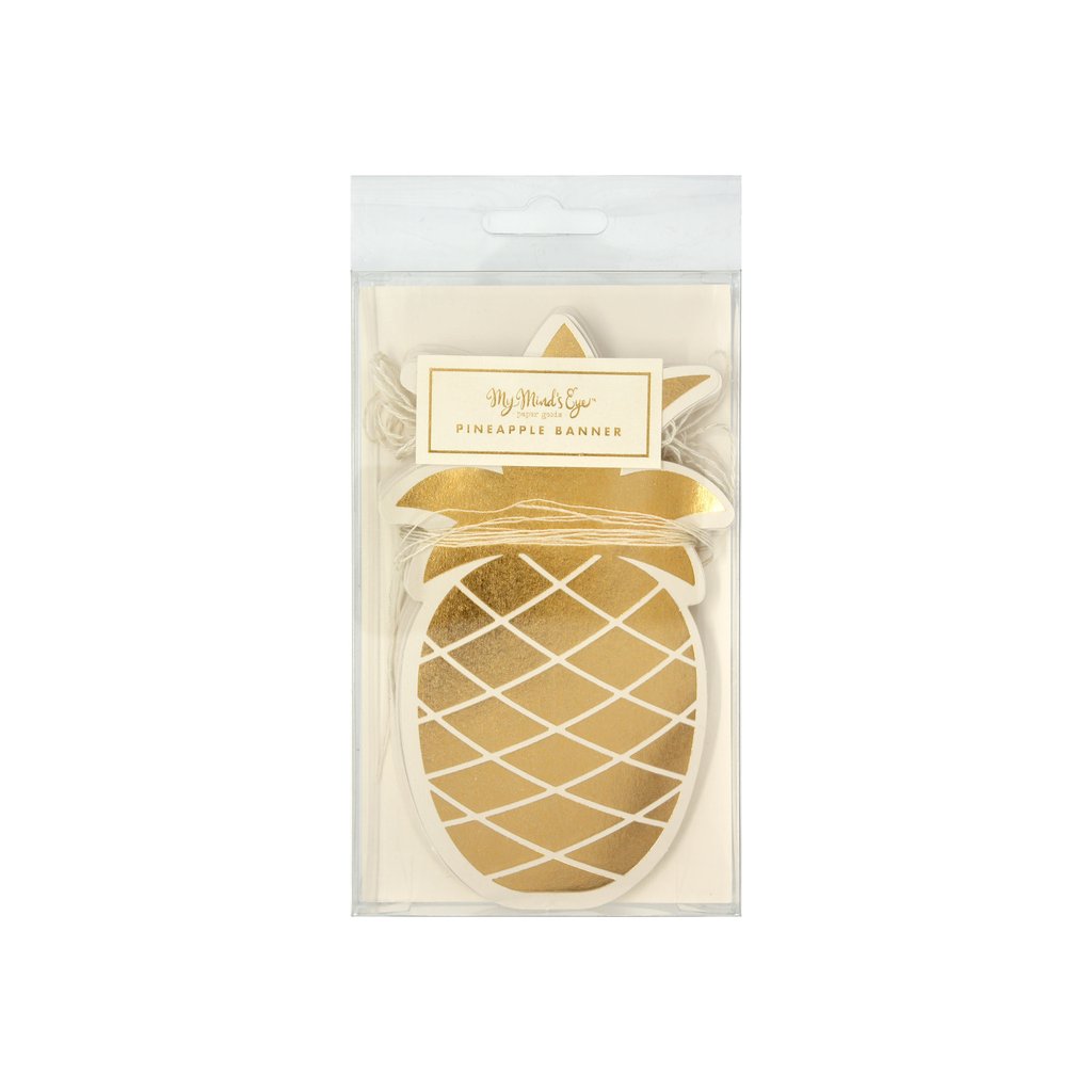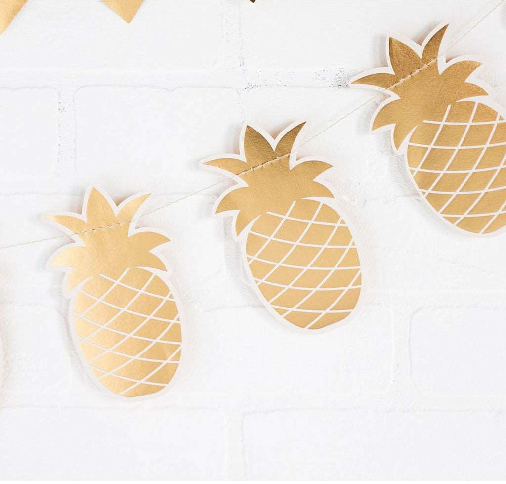Bring island vibes to your celebration with this fun gold foil pineapple banner! Perfect for summer soirées, Hawaiian luaus, or Caribbean-inspired gatherings, this eye-catching die-cut design instantly transports guests to a tropical paradise. Whether you're sipping piña coladas or just dreaming of sandy beaches, this cheerful decoration sets the mood for a vacation-worthy good time!