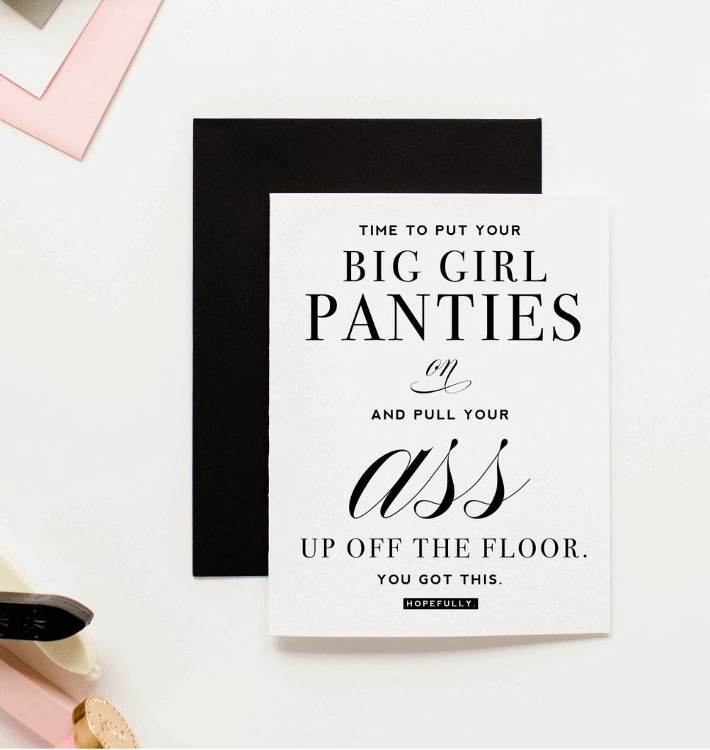 Cover text: The front features the perfect blend of snark and encouragement: "Time To Put Your Big Girl Panties On and Pull Your Ass Up Off The Floor. You Got This. Hopefully.