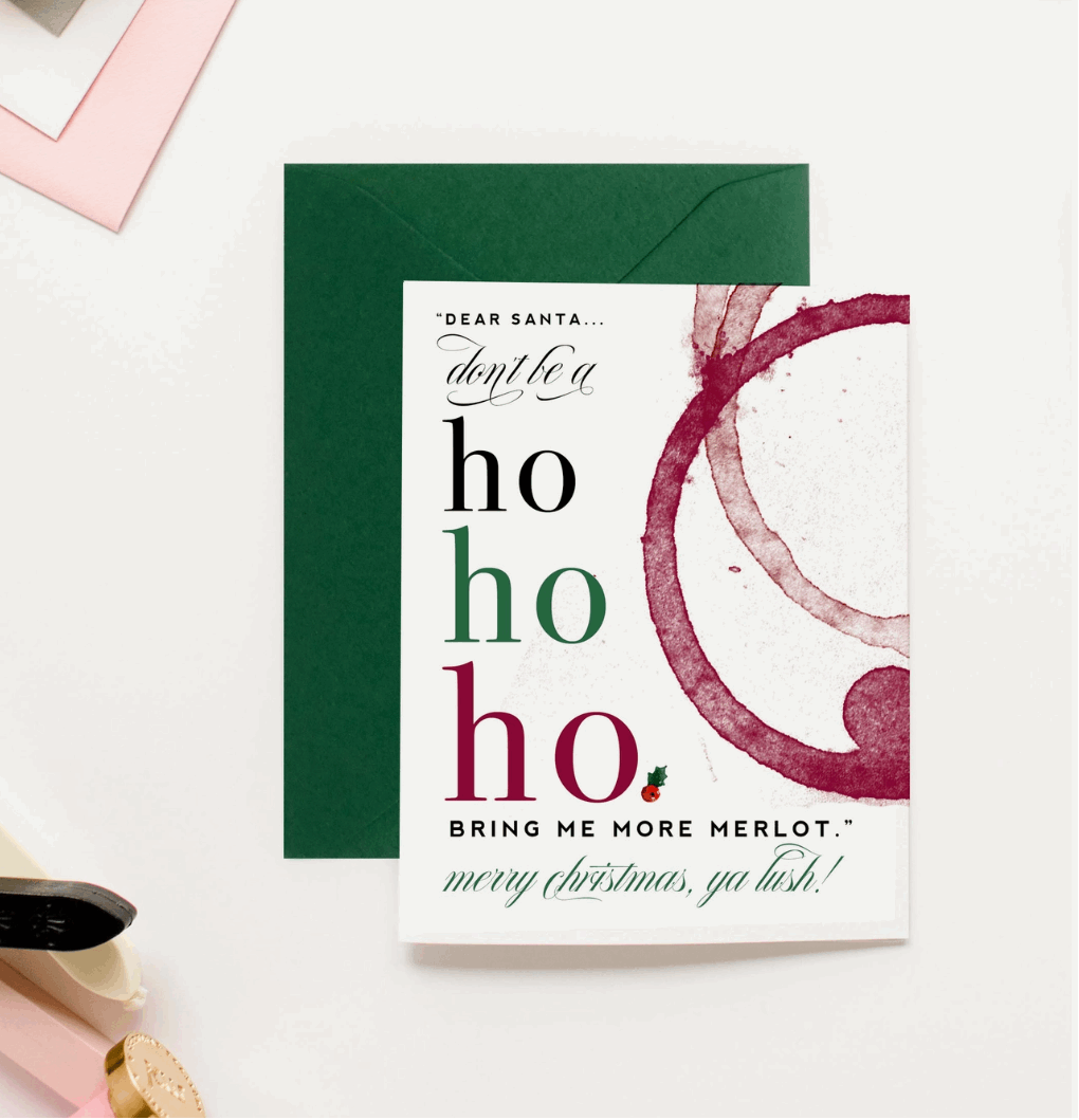 This hilarious greeting card delivers the ultimate Christmas wish list for wine enthusiasts everywhere. They'll love the play on words; a cheeky reminder that the best gift is the one that comes in a glass.