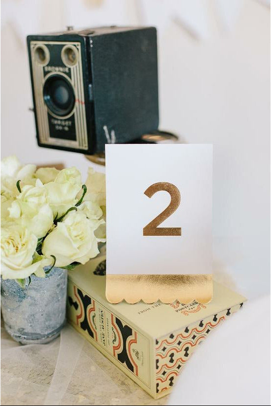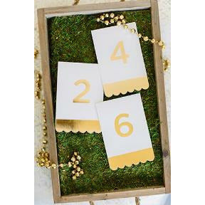 These elegant cream tent cards featuring bold gold foil numerals and striking edge accents will elevate your event tables with ease. Why accept bland, generic table markers when you can command attention?