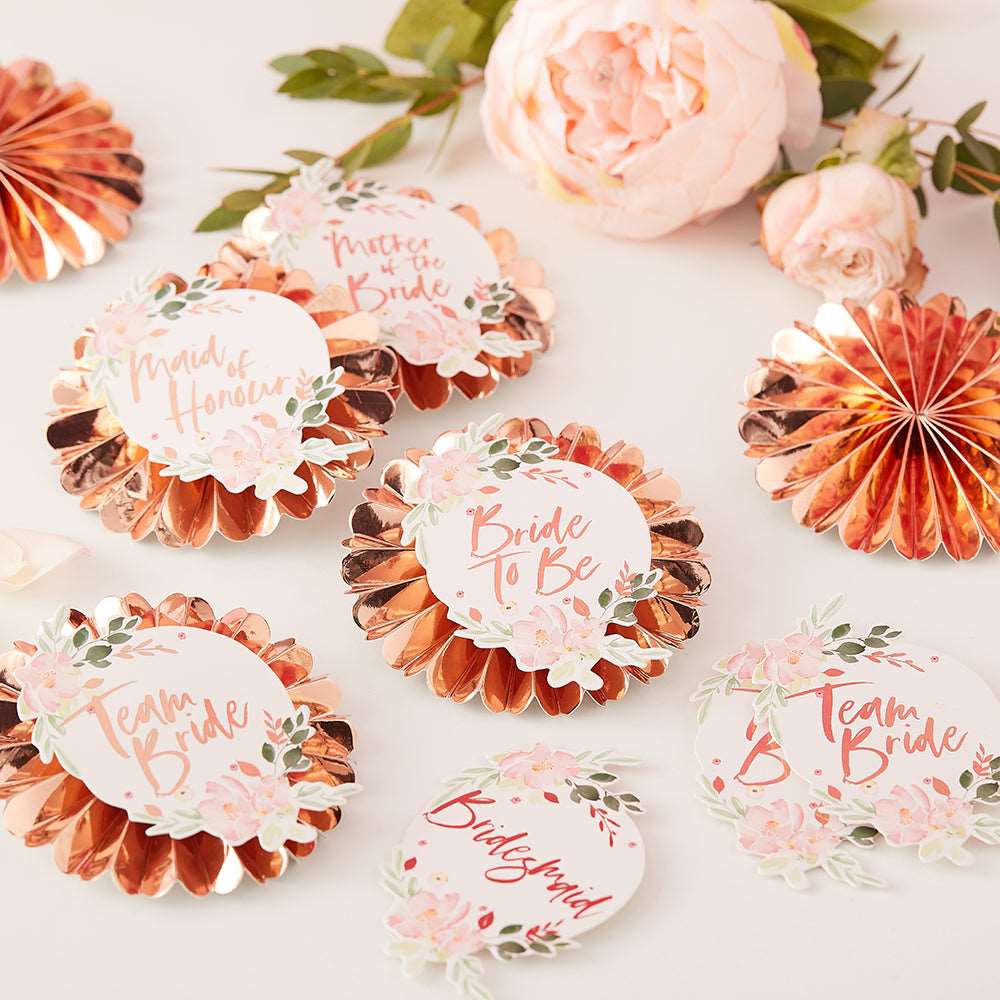 Highlight your tribe with these fabulous team bride badges! These pretty rose gold foil badges, paired with floral print stickers, are the perfect way to celebrate the amazing women who've made your wedding planning a breeze.